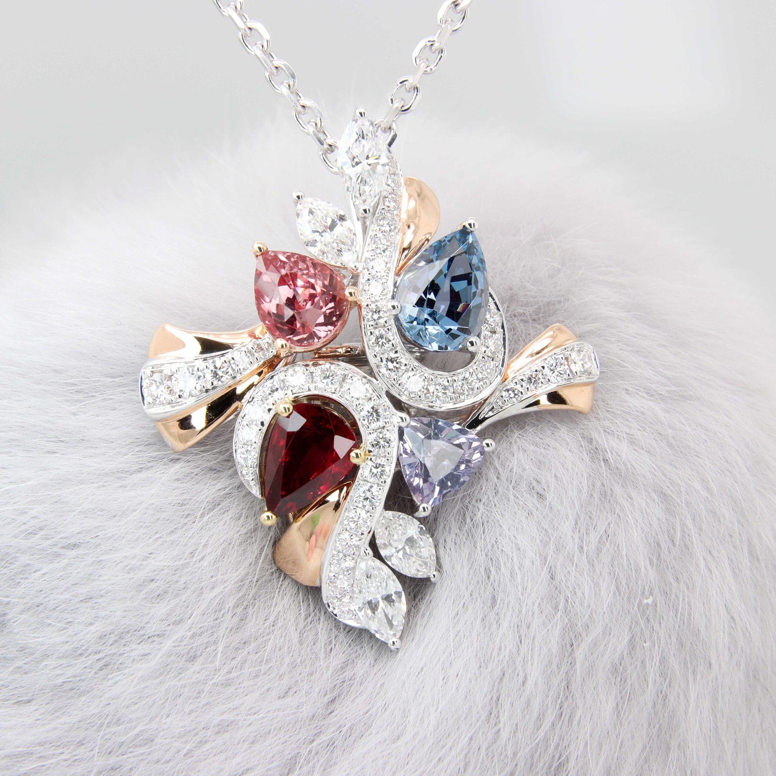 Our journey begins with the wide selection of the finest gemstones. Encompassing the unheated Pigeon Blood of Ruby, the Royal Blue of Sapphire, the Muzo Green of Emerald. Spinel‘s mesmerising array of colours, and the captivating glow of Paraiba Tourmaline.