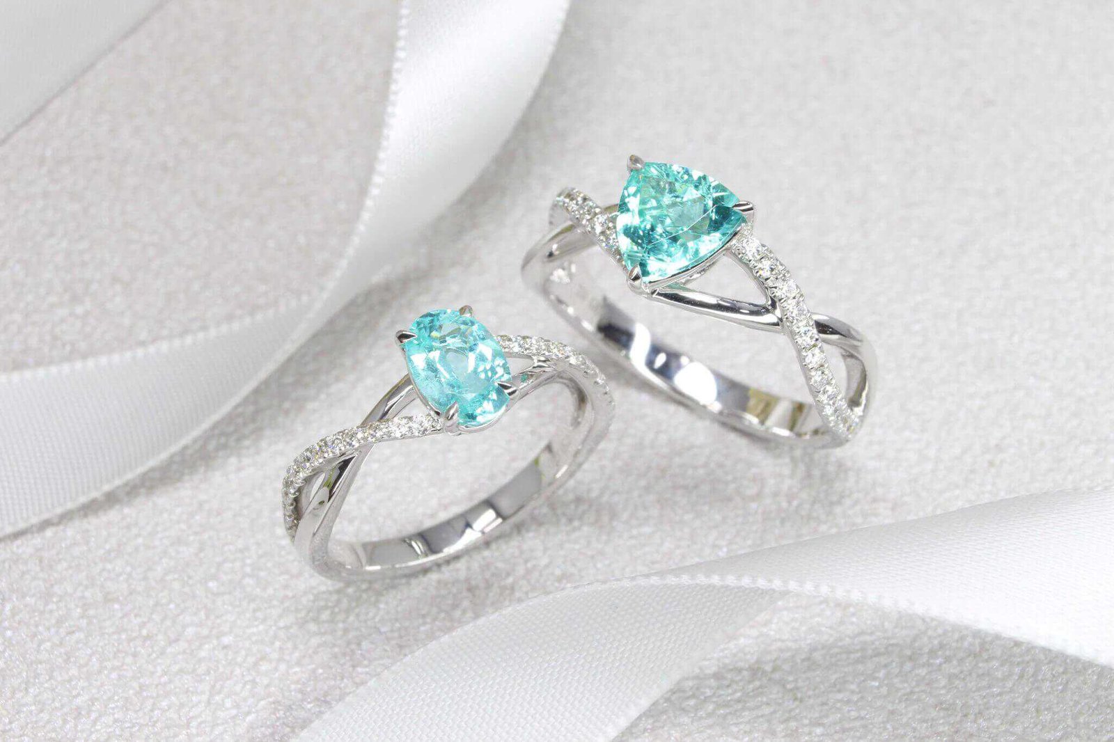 Stackable Paraiba Tourmaline stack perfectly with engagement ring in singapore