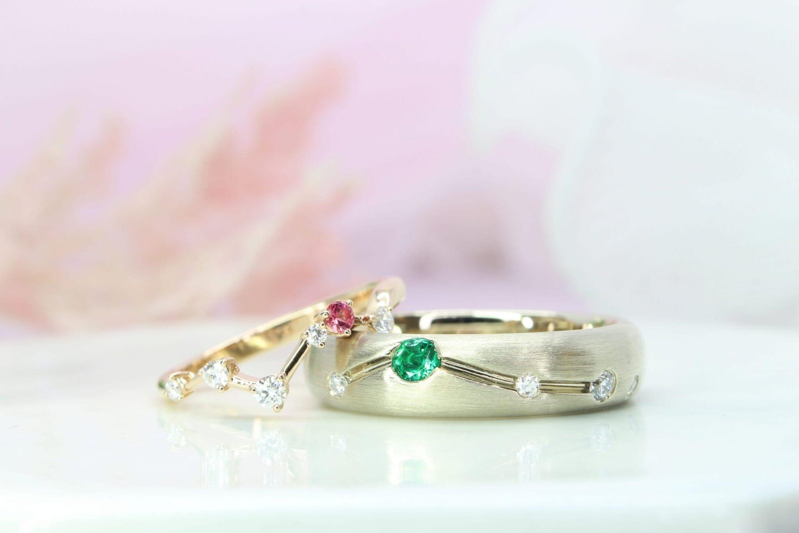 Constellation Wedding Bands with Spinel and Emerald